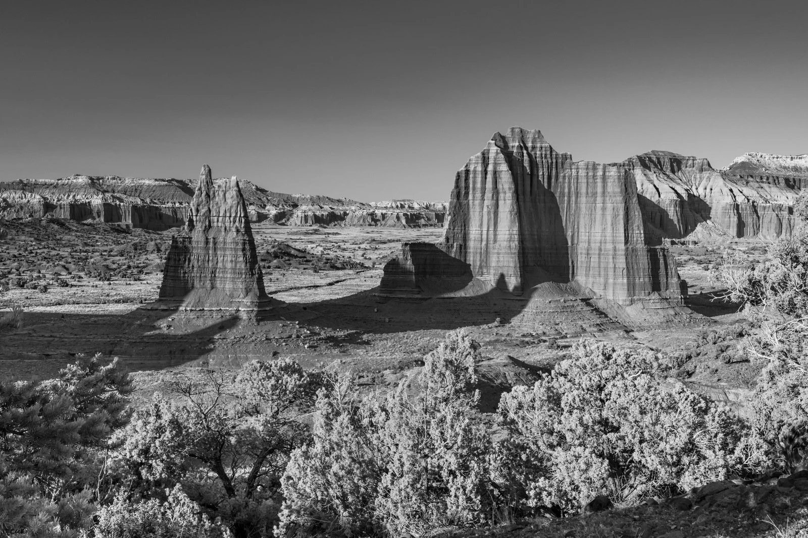 Cathedral Valley in late sun, Capital Reef NP - BW